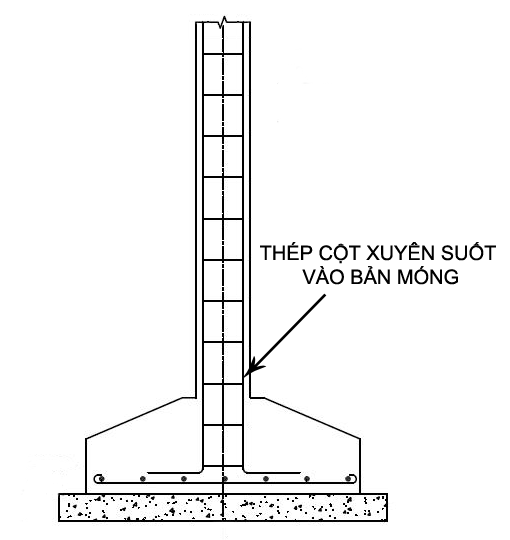 Theo hình vẽ, thép cột được neo chắc chắn vào đế móng. Như vậy tính liên tục của kết cấu được bảo toàn. Điều này đồng nghĩa với nếu có momen tại chân cột thì có khả năng momen này truyền vào đế móng.