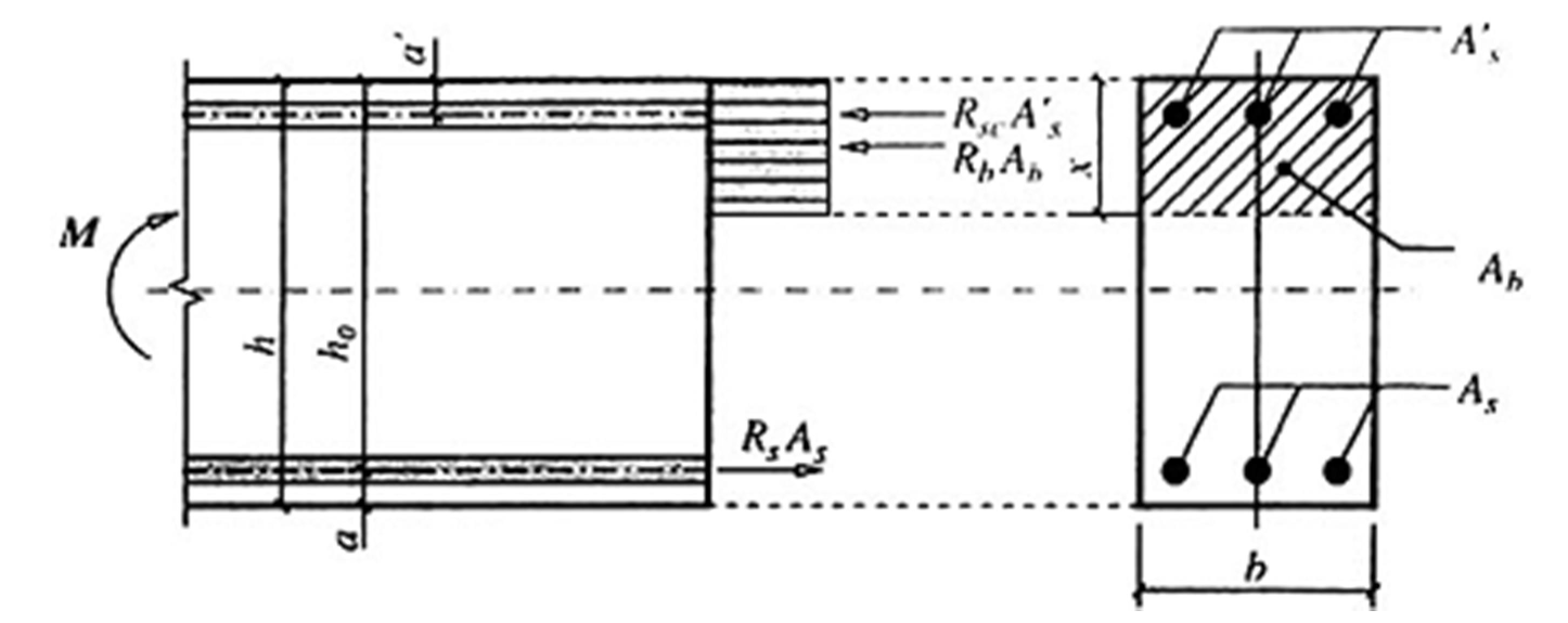 M = min(MC , MT) = min(Rbbx(h0 – 0.5x) + RscA's(h0 - a'), RsAs(h0 – 0.5x)) (3)