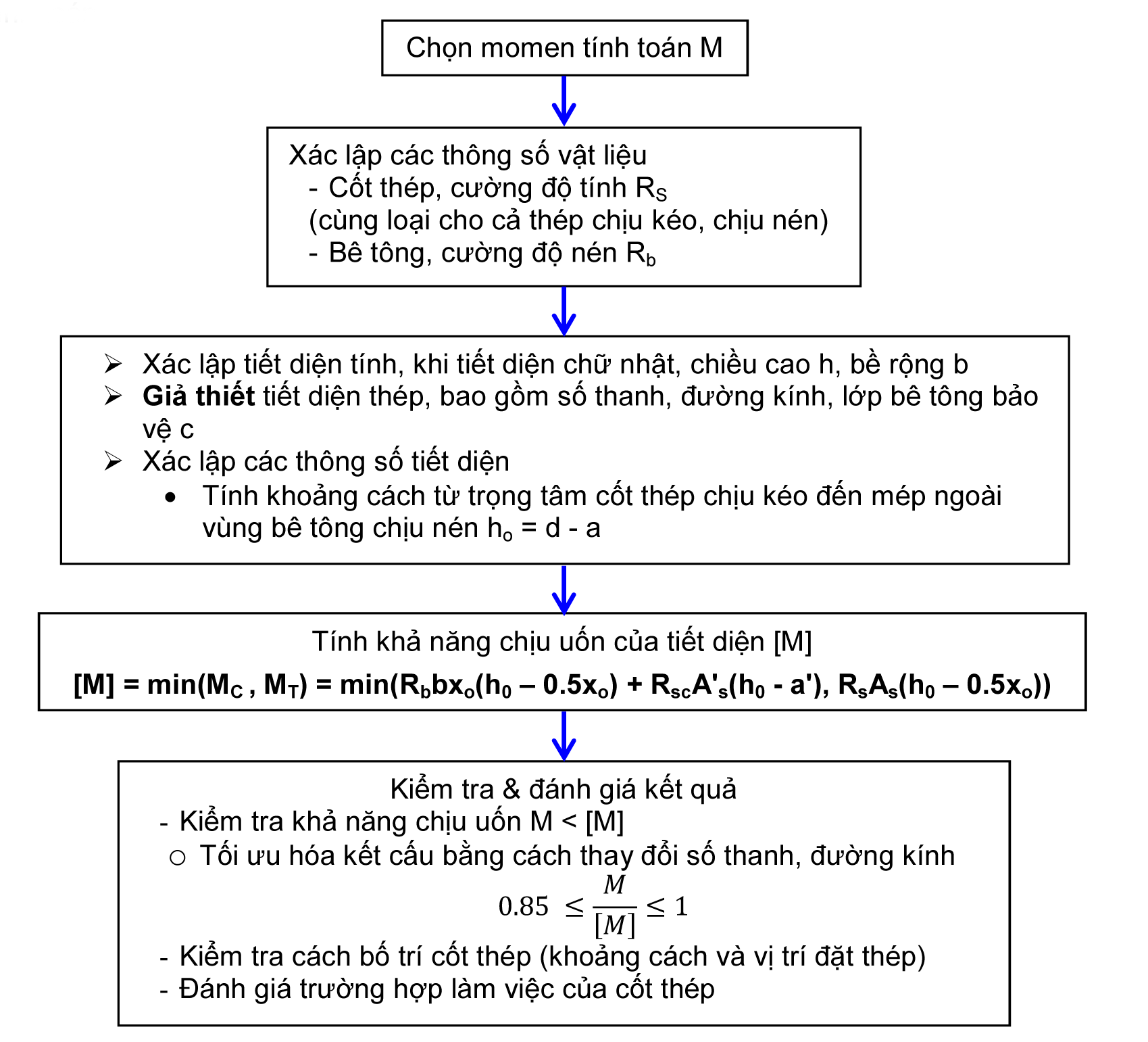 Khi tính dầm chịu uốn, quy trình tính cốt thép dầm như sau đây được áp dụng phổ biến: