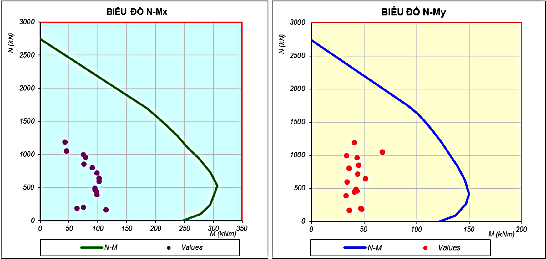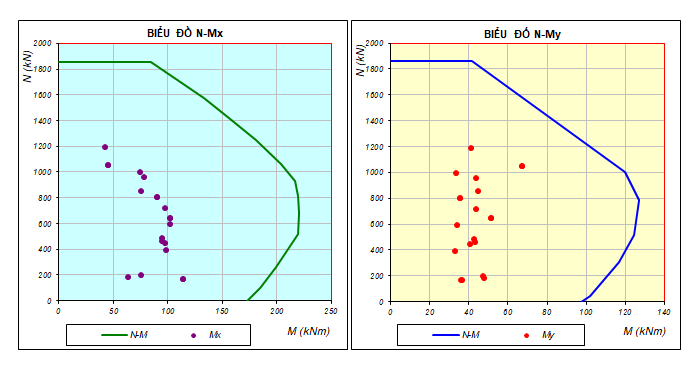 Tính toán thiết kế cột dựa trên kiểm tra khả năng chịu lực của cột theo biểu đồ quan hệ Lực dọc – moment (N-M).