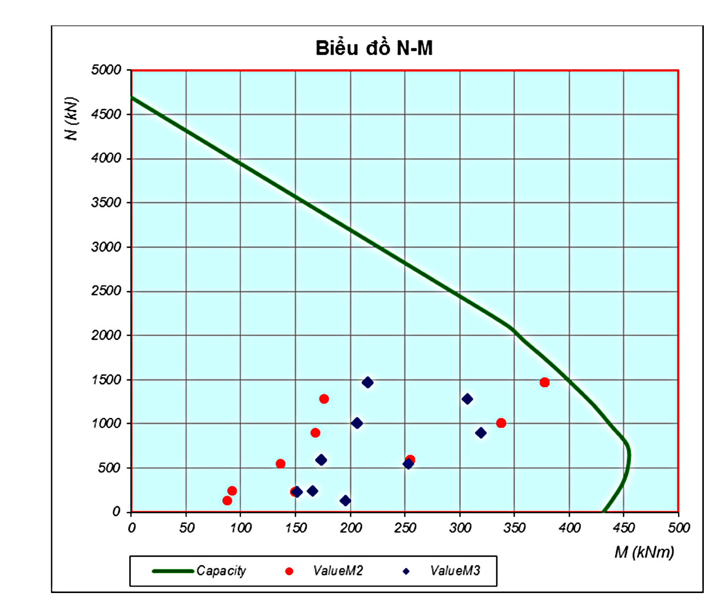 Tính toán thiết kế cột tiết diện vành khuyên dựa trên kiểm tra khả năng chịu lực của cột theo biểu đồ quan hệ Lực dọc – moment (N-M).