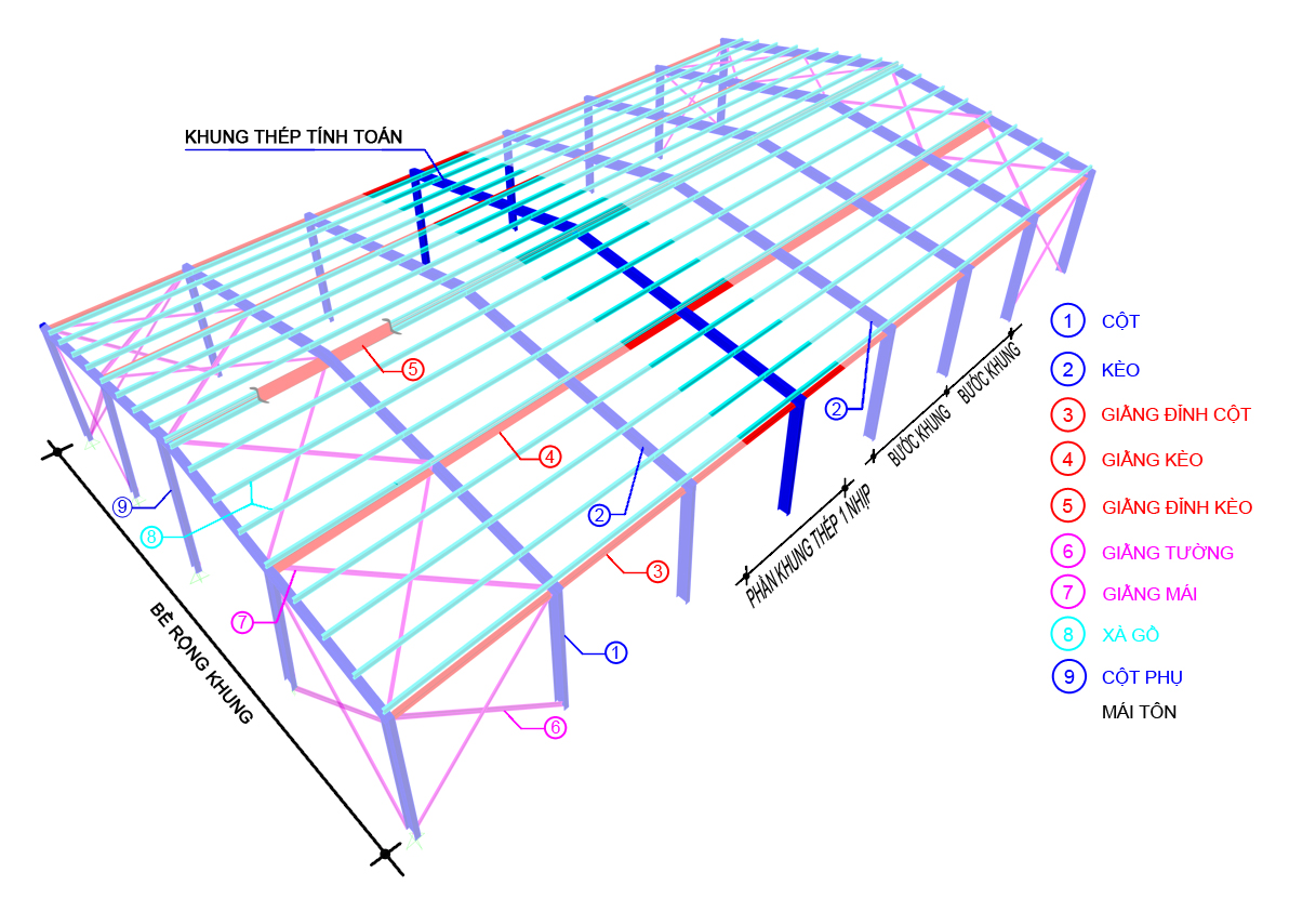 Khung thép 1 nhịp là dạng kết cấu phổ biến cho các công trình công nghiệp như nhà xưởng, nhà kho… Phần mềm tính khung thép nhằm đáp ứng yêu cầu thiết kế nhanh chóng và chính xác đối với các công trình tại Việt Nam.