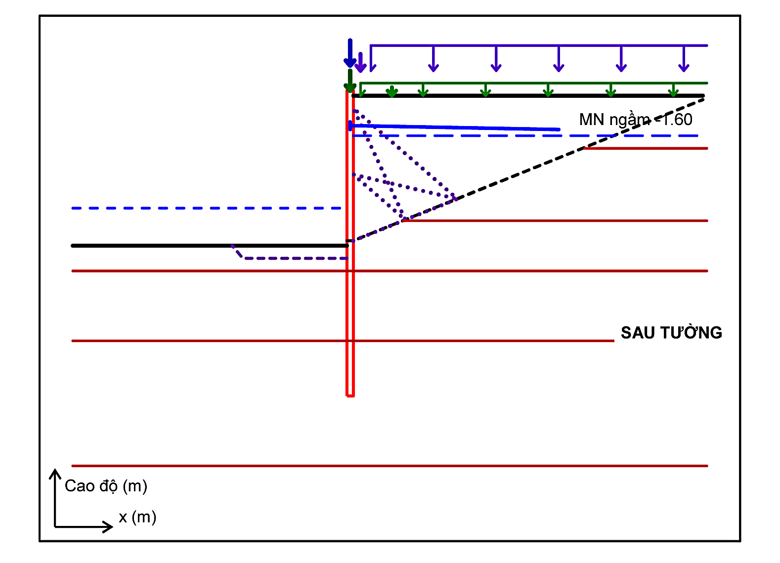 • Số liệu về địa chất, đất san lấp & mực nước ngầm sau tường, mực nước trước tường