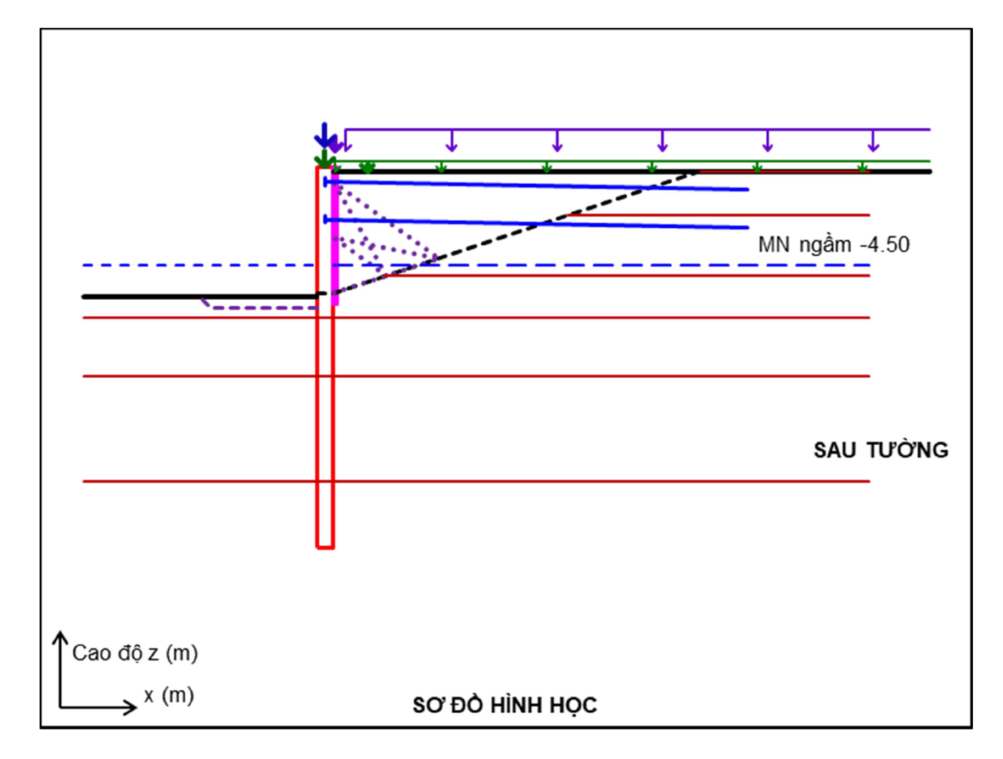 Minh họa mô hình tính Tường cọc hở
