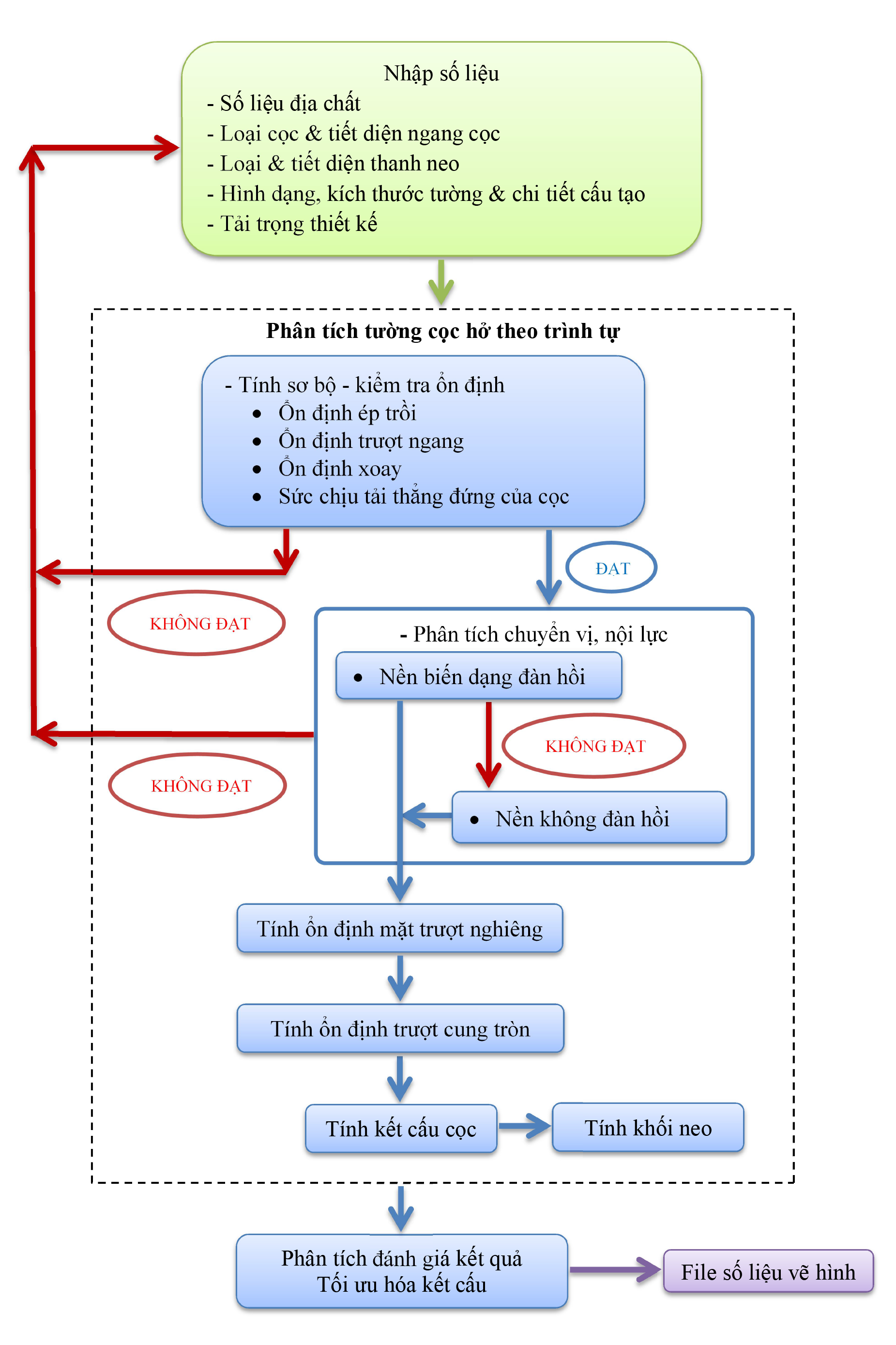 Áp dụng qui trình tính toán trên là bắt buộc nhằm bảo đảm đầy đủ các điều kiện về ổn định, biến dạng và khả năng chịu lực cho thiết kế kết cấu tường cọc hở. Quy trình trên giúp công tác thiết kế chính xác và nhanh chóng.