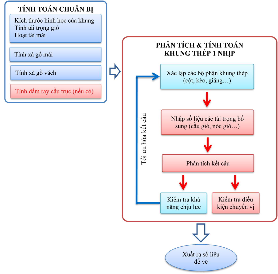 Qui trình tính toán sau đây giúp cho việc tính khung thép được nhanh chóng & tối ưu hóa.