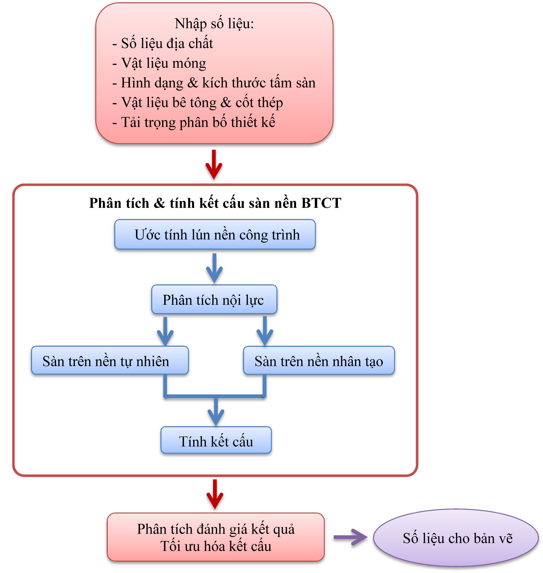 Áp dụng qui trình tính toán trên là điều kiện tiên quyết trong bài toán tính kết cấu sàn nền kho. Quy trình nhằm bảo đảm đánh giá toàn diện chất lượng thiết kế hạng mục kết cấu